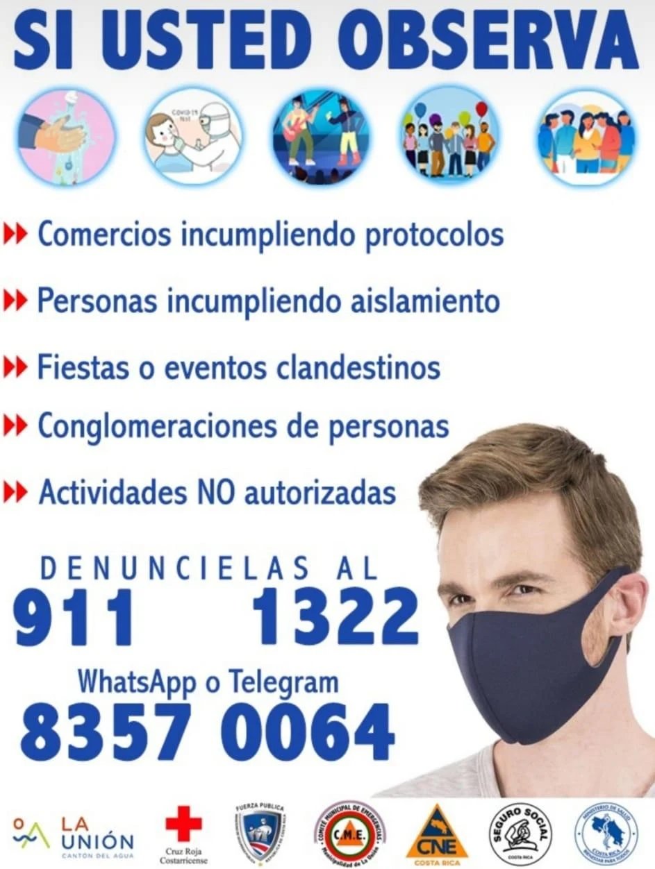 La Alcaldía Municipal y el Área Rectora de Salud de Goicoechea, hace un llamado a los vecinos del cantón para que utilicen correctamente las mascarillas o tapabocas, lavado de manos y el distanciamiento social y con ello evitar que los contagios sigan creciendo y así detener la expansión de la COVID-19.
