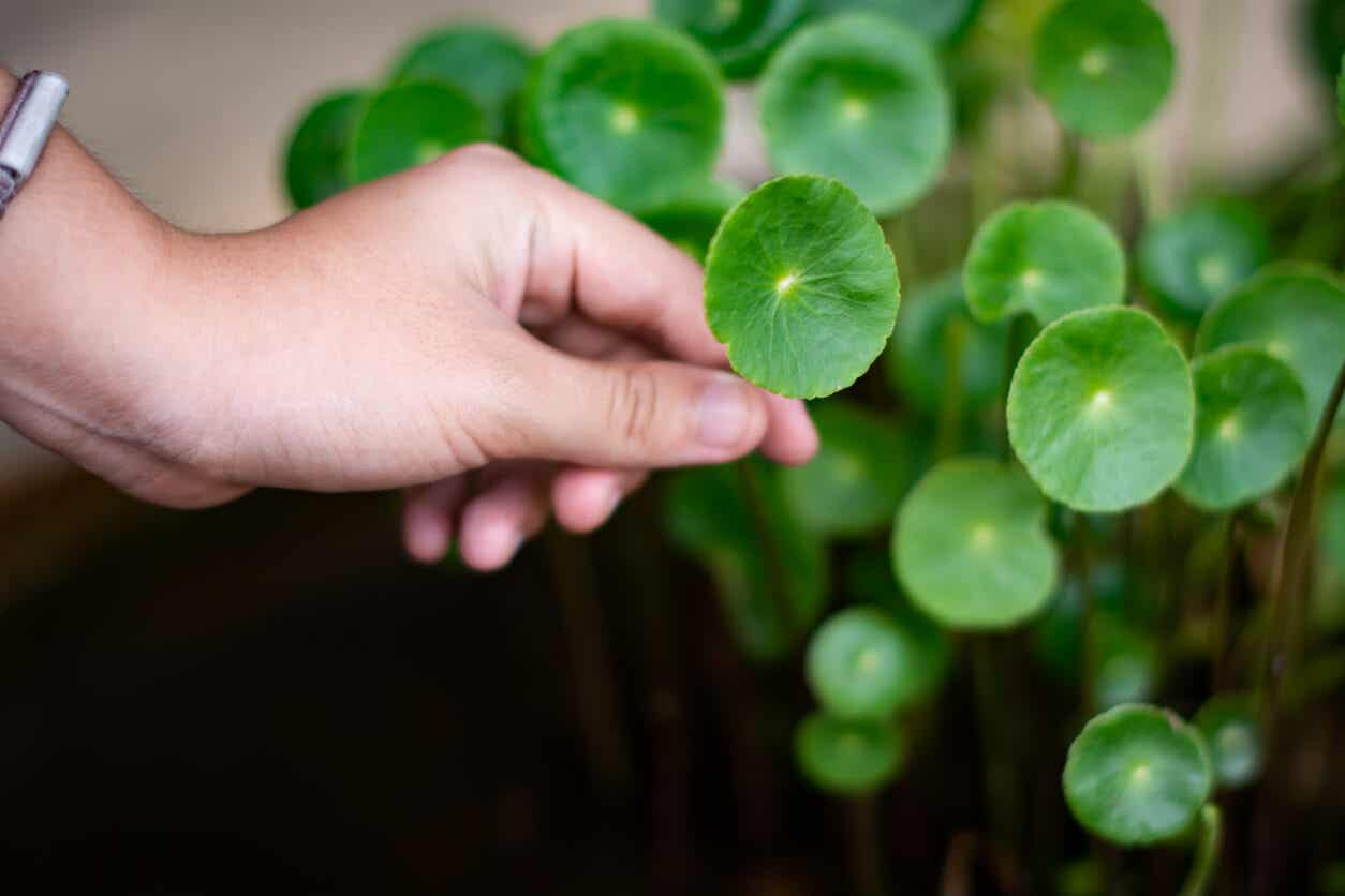 Gotu kola o centella asiática es una planta insípida e inodora, muy popular en la medicina ayurvédica. Tiene hojas verdes en forma de abanico y crece tanto dentro como alrededor del agua.